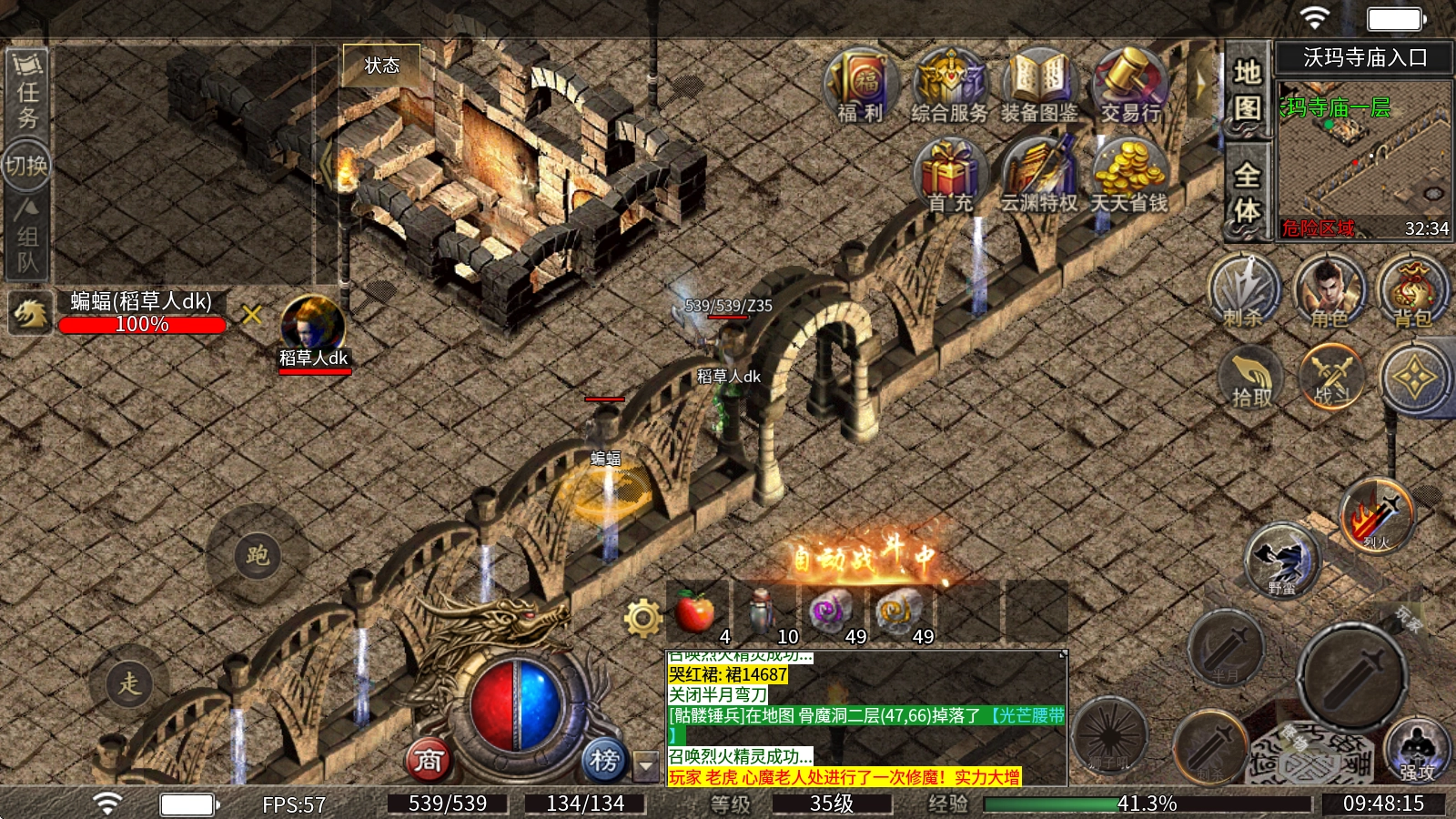 6、武器升级:怪物会产出黑铁神矿,用于升级武器,失败不破碎,可在比奇城查看。