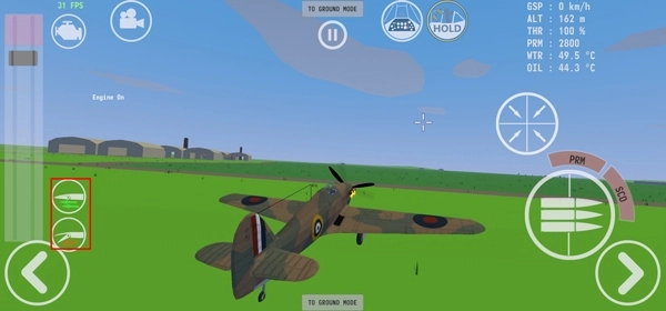 1、当我们进入游戏之后,首先我们需要点击左上角的发动机,飞机就会发动;