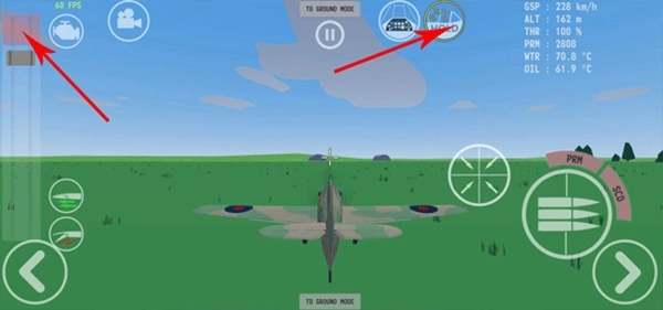 2、滑动屏幕可以控制飞机的视角,点击右方的子弹图标进行攻击;