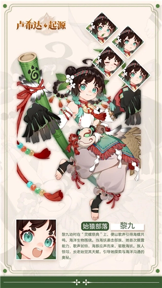 黎九在幼时的“灵螺祭典”就能够以歌声共鸣海螺,引得海洋生物围绕。她首次展露能力是在一次海妖袭击部落,海豚追随着她如铃般的歌声而来,将海妖驱赶。
