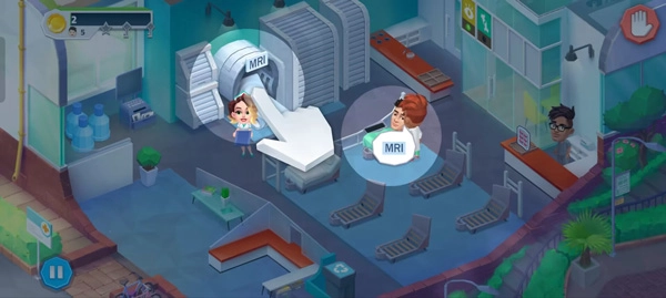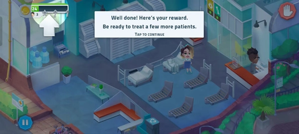 1、作为这家医院的管理者,你需要治疗病人并升级医院,点击右下角的绿色三角形开始游戏以获取星星。