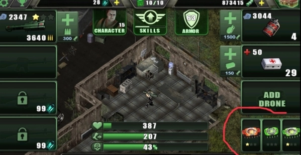 3、游戏剧情第二关完成后,会弹出一个界面,问你是不是喜欢这款游戏,点右边喜欢,会跳到商店,不用评论,直接回到游戏,给一个蓝箱子奖励。这个箱子没有保底,可能出两把烂武器,也可能出超好武器,就看你脸黑不黑这个箱子出的武器可以让玩家顺利升9级,基本不带肝的如果第二关奖励特别差,还不如删游戏重装人物界面右下有三个芯片槽,我的配置是一红二绿。芯片红色加血量,绿色加攻击,蓝色加奔跑速度血量没必要加太高,400差不多足够了,医疗包反正多的用不了。就算堆到1200血,打不动怪照样嗝屁蓝色加奔跑速度就不说了,喜欢的可以留一个给男的用,他走路慢最关键是绿色,直接加攻击力和暴击。可以让武器攻击翻倍,并且几乎每一下都出暴击人物最高升到30级,也就是说,技能点只有30,怎么分配很重要首先第一个必加技能,绿色芯片,进一步堆高攻击与暴击。