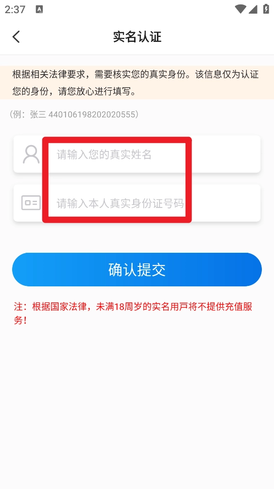 5、如图所示,输入身份信息后,点击"确认提交"即可。