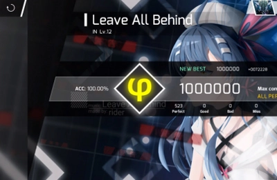 4、拥有炫酷的谱面与出色的音律,可挑战「EZ」「HD」「IN」[AT]四种不同难度的原创曲目;