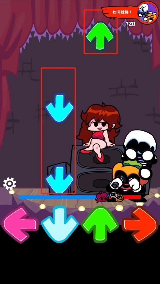 4、图中与下方固定箭头颜色相同的箭头下落时,才是玩家需要把握的节奏环节。玩家需等下落箭头与下方固定箭头完全重合时点击,这样才能得分;若点击过早或过晚,都无法获得分数。