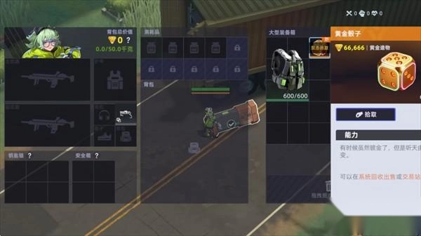1、玩家可以通过地图中高亮处箱子搜集物资,点击右侧栏物品放入背包中。