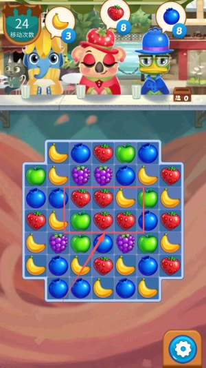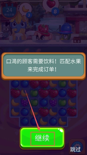 3、接受订单:在24移动次数界面,点击继续匹配水果。