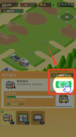 3、不断升级你的房车,以获得更多可用于建设的空地。