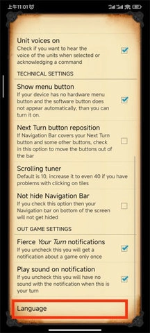 3、然后拉到界面最下方,选择“language”;