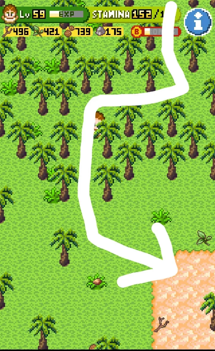 接下来是推石头去两棵椰树之间的坑。在度过初期之后(好像是做了回力镖)就可以过去右边了