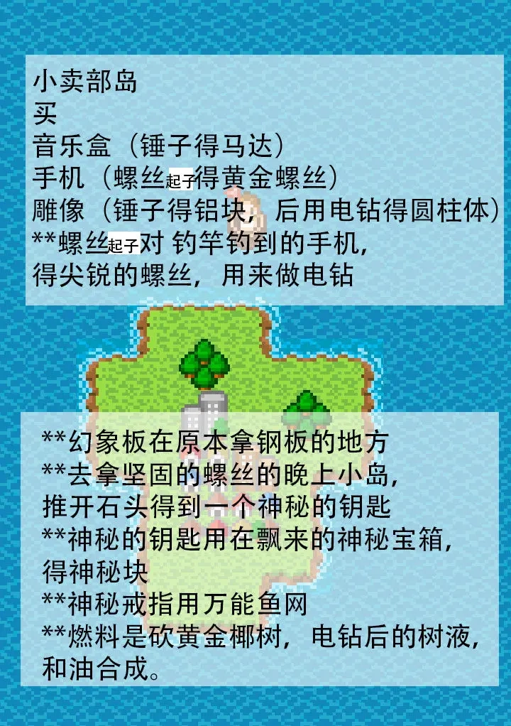 这就是满是杉树的岛,原本有石头围住黄金椰树。后期阅读神秘动力后,石头会自动消失