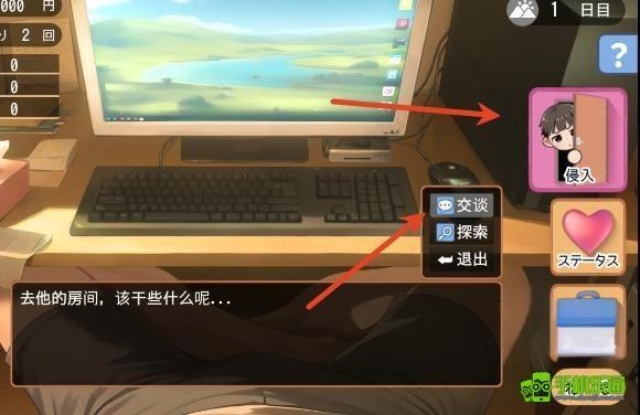 6、点击右边的侵入按钮,选择交谈或探索作出选择;