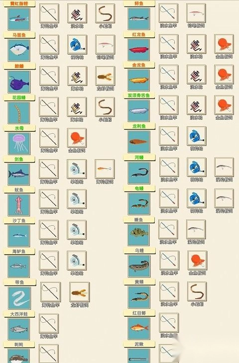 3、钓鱼全图鉴(共72种)