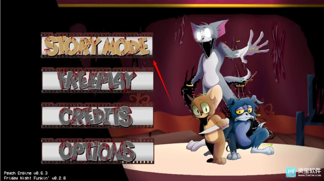 1、进入中后点击第一个选项“STORTY MODE”开始游玩