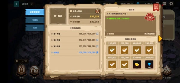4、一个大关 有累积最高分数奖励 分别是收藏品(多刷刷就有) 小关各32w 加起来106w分能拿到积分奖励