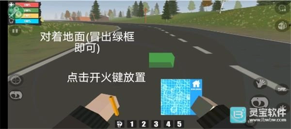7、对着地面(冒出绿框即可)点击开火键放置。
