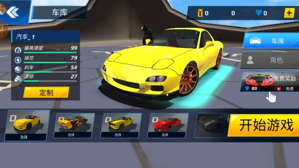 1、进入,驾驶车辆开始参与竞速,选择角色驾驶车辆。