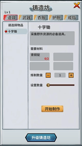 制作各种特殊道具,和弟子装备的作坊。材料由资源堂生产提供。等级越高能制作的装备等级和极品几率越高。