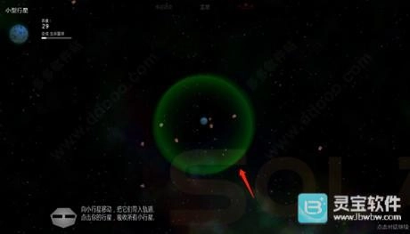 5、此外还能朝着小行星移动,将它们带入轨道,随后点击你的行星即可吸收附近所有小行星。