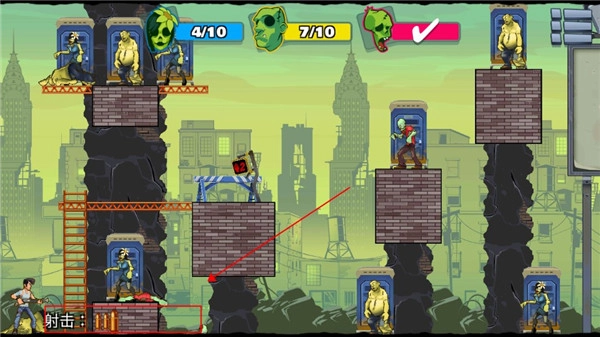 2、玩家能够通过反复尝试,找到最适配的发射轨迹与反弹路线,以此消灭更多僵尸,达成任务目标。