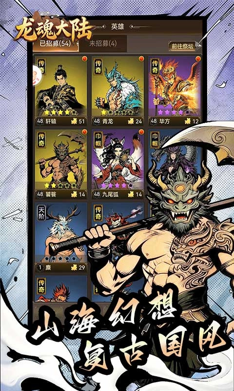 龙魂大陆是一款充满刺激感的卡牌策略游戏。游戏里拥有众多神话角色,玩家能够持续招募更优质的角色来开启冒险;同时,游戏内设置了丰富多样的玩法供玩家体验,而且每个角色都具备独特的职业定位与战斗效果,因此玩家需要精心搭配队伍,组建出强大的阵容参与战斗。当然,玩家还得不断提升自己的部落等级,以此获取充足资源来更好地进行角色升级。另外,游戏中还有各类副本等待挑战,炫酷的战斗特效将为玩家带来极致的视觉冲击。