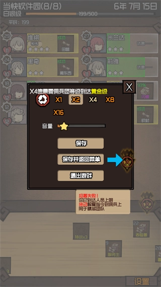 4、当达到更高级别后,你可以在设置里调整时间流逝的速度,也能通过手动点击下方的任务栏,每点击一次就会过去一天。