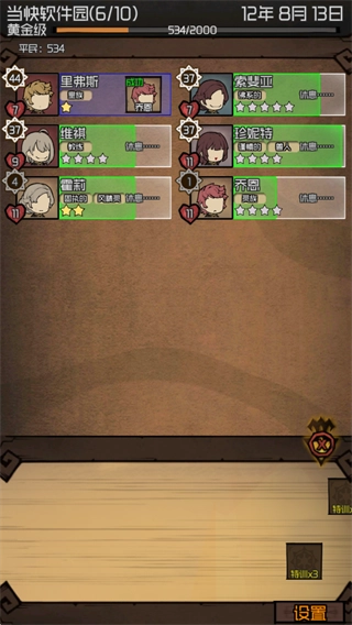 1、玩法是通过接取任务来让超模队员不断壮大佣兵团,任务能否成功和角色本身以及任务等级都有关系,角色的星级对应着资质高低,点击队员的头像就能看到各项属性信息。