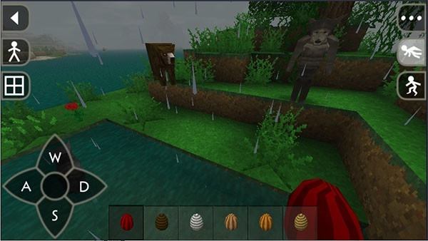 所有物品都得靠玩家自己去收集和制作。哪怕到了夜晚,像狼这类野兽也会现身。它们都握着粗大的木棍。要是瞧见它们,就得尽量躲着它们。