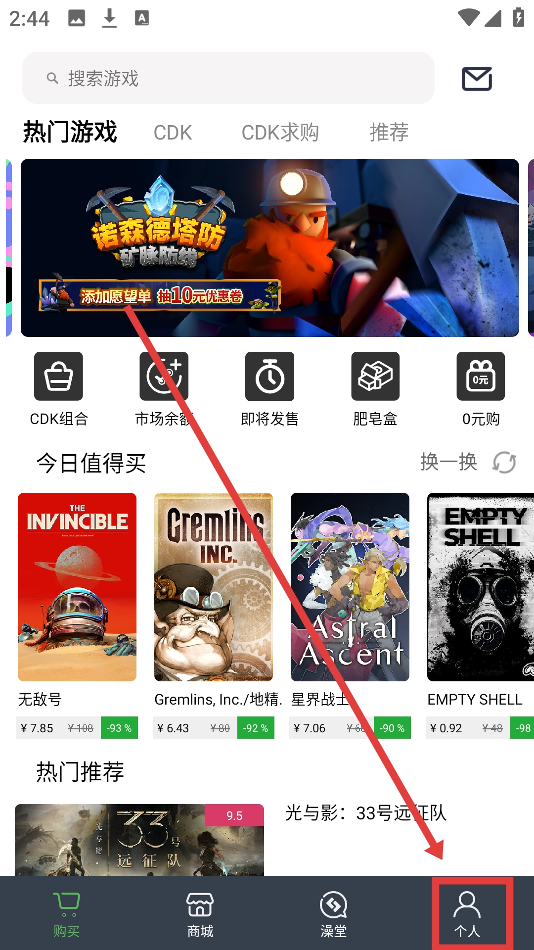 1、在首页,点击底部【个人】,可进入个人中心页面,准备进行Steam账号绑定操作啦。