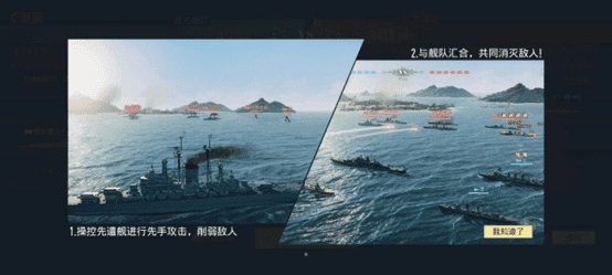 1、先遣阶段 (TPS操作): 玩家操控一艘先遣舰进行第三人称射击(TPS)战斗。通过灵活转向规避敌方炮弹与鱼雷,同时操作武器精准打击敌人,为后续决战奠定优势。