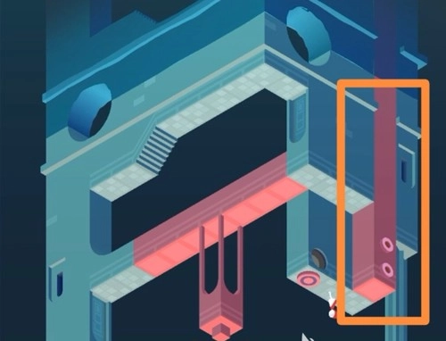 母女配合:借助移动平台把两人送到断层的另一边。女儿按动粉色按钮时,会有部分建筑升起构成通路。操作步骤如下:首先让女儿去按远处的粉色按钮,之后萝尔走进出现的门里;然后女儿按左侧的粉色按钮,与此同时萝尔长按浅黄色圆形按钮并转动圆柱,给女儿打通道路以便汇合,最后一起进门。