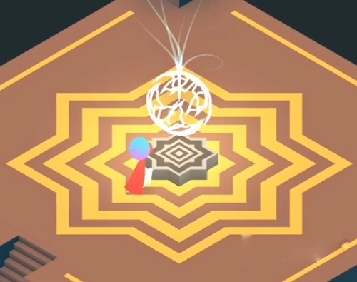 弧形墙移动:最终场景中,凸面与凹面的弧形墙均可移动。首先利用凸墙移动至前侧灰色按钮处,再抵达另一个按钮,召唤出图腾,本章结束。