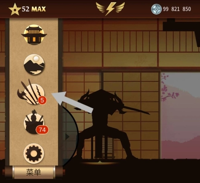 1、进入暗影格斗2这款以后,首先点击菜单按钮。