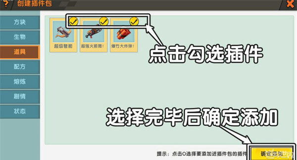 冒险家们也能制作武器、生物、方块等不同类型的插件来组合成插件包,自己制作的微缩模型同样可以应用到插件里。另外,新版本还新增了局部触发器功能,能直接在插件上设置触发器,而且可以直接打包呢~