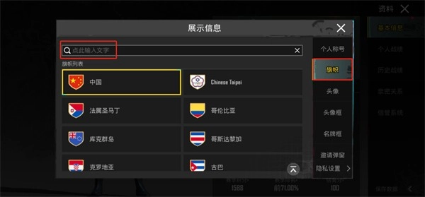 3、在展示信息一栏,点击要更改的国籍,或者直接在搜索框输入国家名字搜索;