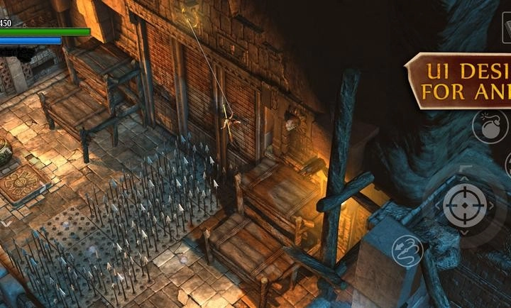 标枪既是武器也是攀爬工具。面对高墙时,将标枪射入墙面作为垫脚石,逐步攀爬。