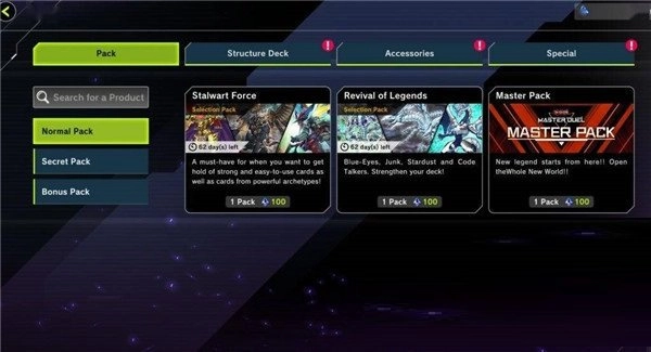 先来说说开包的情况,normal pack指的是大包,现在主要分为三种类型。这里建议优先开第一种,更容易开出主流物品;第二种是动画主题的包;第三种是fgo新年福袋,不太建议抽取。