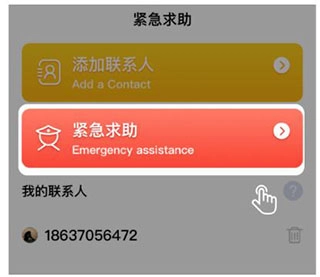 1、在首页点击一键求助按钮并添加紧急联系人后,若遭遇紧急情况,点击立即发送,就能马上向紧急联系人发出求助消息。