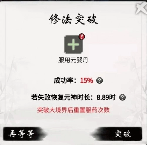 这个阶段修炼起来很简单,基本是有手就行。需要注意的是,每天服药和吐纳都有次数限制,突破境界后次数会重置,所以在炼气期时,尽量把每天的服药次数用满,同时也要把100次吐纳次数都做完。