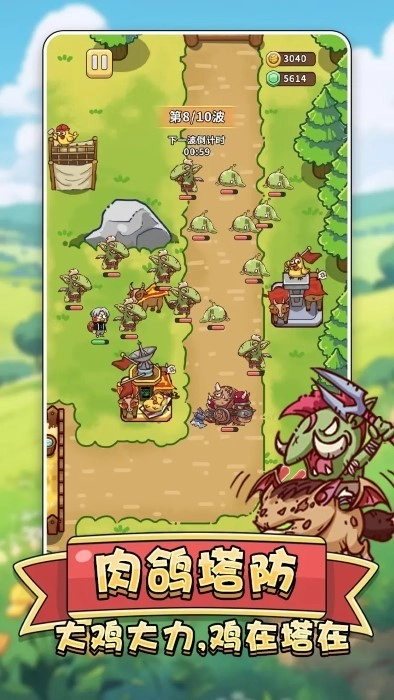 《肉鸡保卫战》是一款十分有趣的塔防策略游戏,玩家将带领小鸡展开一系列战斗,体验轻松的塔防与“鸽子玩法”。游戏中,玩家需操控角色在不同怪物出口处攻击敌人,获取硬币与经验,以此升级技能、建造防御塔,守护自己的村庄,全力生存下去。每次战斗胜利都能快速提升战斗水平,多样的功能道具与装备也能帮助玩家更轻松地完成任务,整体玩法充满乐趣。