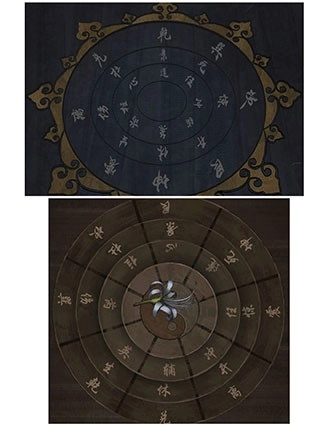 19、将龙纹盘放到之前的圆形槽位中,旋转【左上左下右】,得到【油纸伞】。