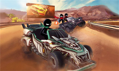 各种赛车的型号任你选择不仅要开车还要躲避后面火柴人的追击使用武器把你前面的车辆给炸飞吧