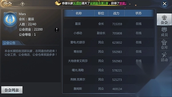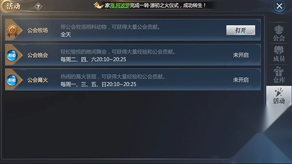 主要是领福利的地方,我们可以在这个页面完成公会的一些活动,以此来获得奖励!