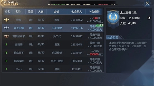 在列表界面,我们可以看到同区的其他帮会情况,了解对方的状况!知己知彼百战不殆。