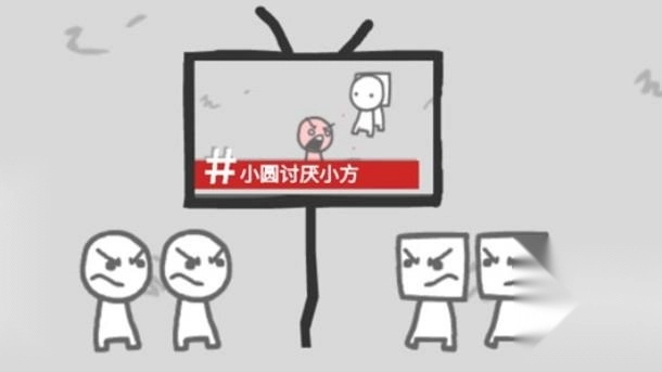 5、拍下小圆害怕小方的画面,小方就会举得不爽,不开心