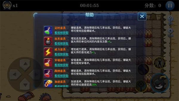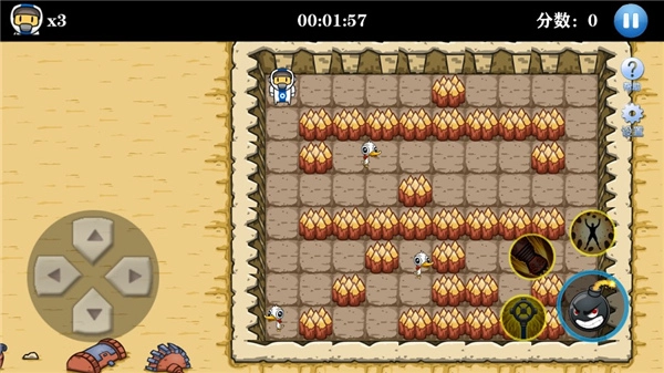 2、左侧是控制角色移动的摇杆,右侧是炸弹按键;