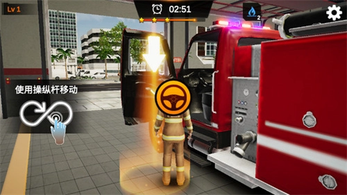 3、控制角色移动到消防车驾驶席,同时点击驾驶键即可操作车辆;