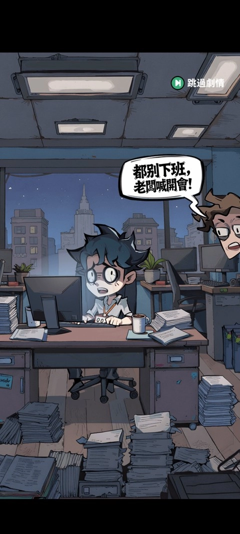 3.开发一个见证普通上班族蜕变的系统!通过加班值积累资源,升级总部解锁更多功能。
