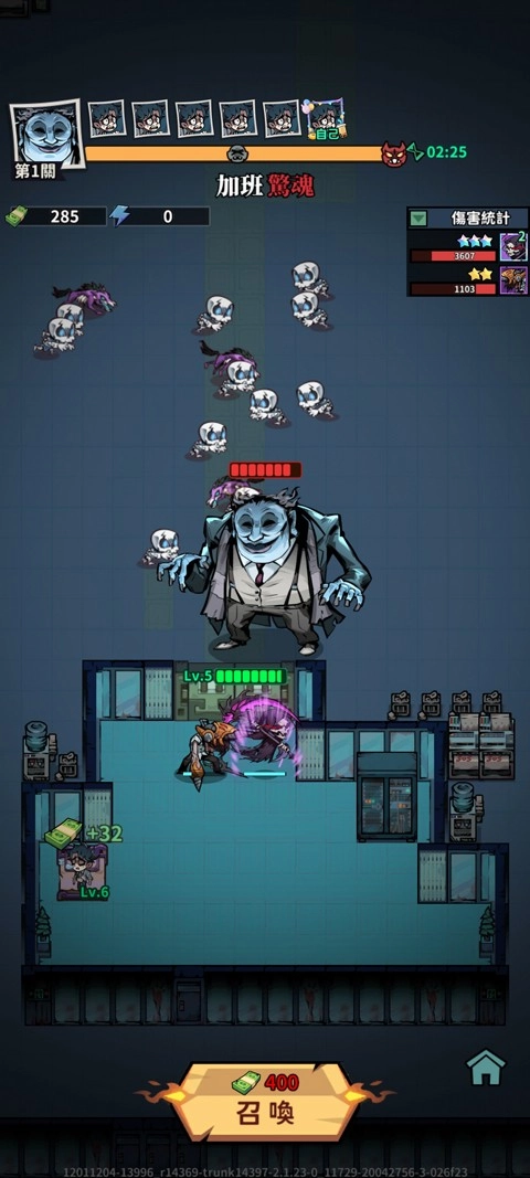 7、获取的钞票至关重要,能用来升级床铺、增强房门防御,或是召唤更多队友帮忙战斗;每关的终点都会有高强度BOSS出现,得提前做好战力储备。