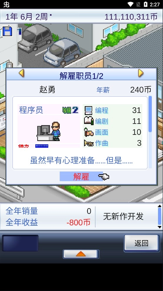 玩家需要对员工进行培训、升级和解雇,以提高他们的技能和属性,从而提高开发的质量和效率。